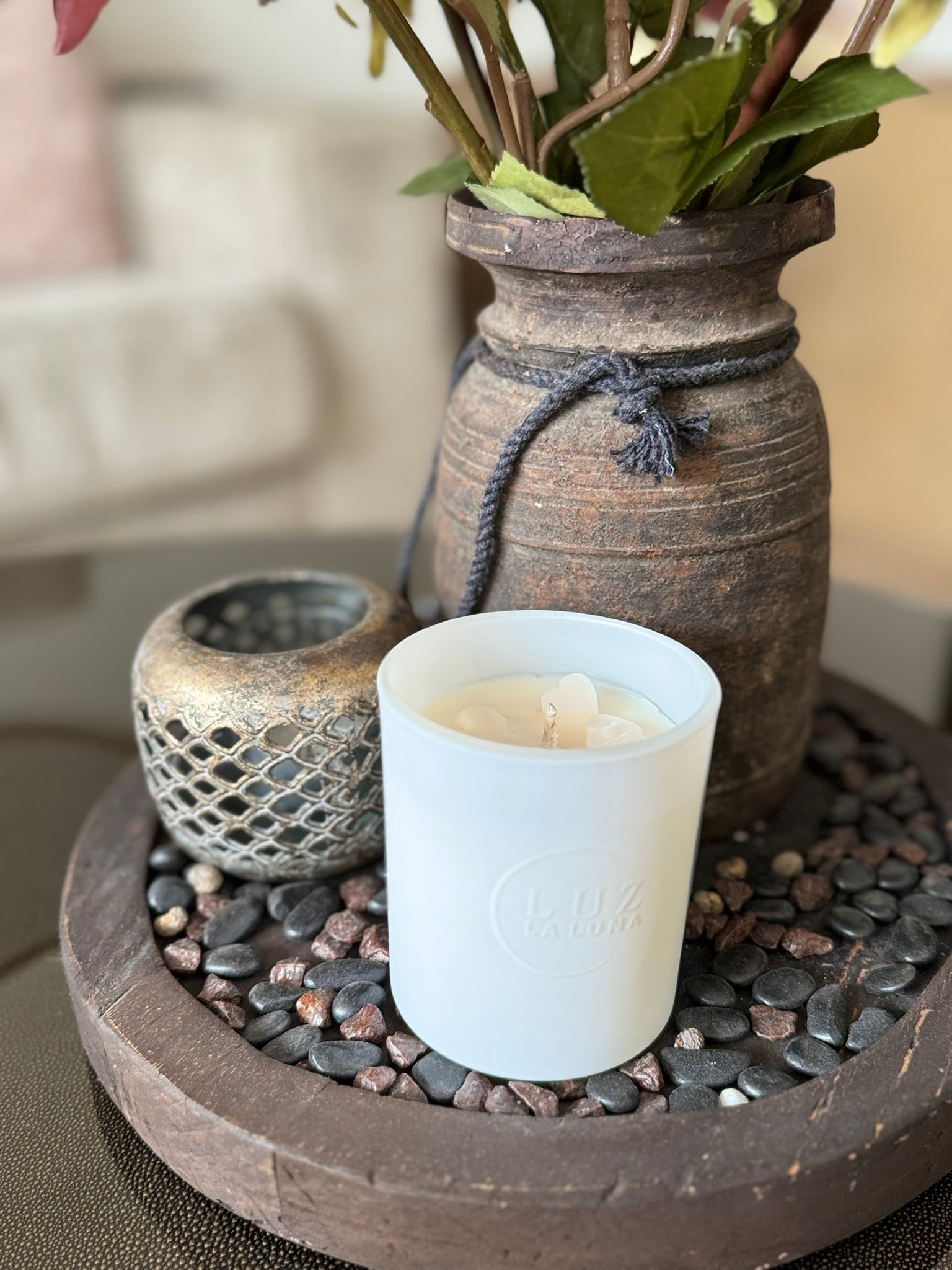 Laat je meevoeren naar zonnige oorden met onze nieuwste handgemaakte geurkaars van 275ml – een tropische mix van romige kokos en warme vanille.